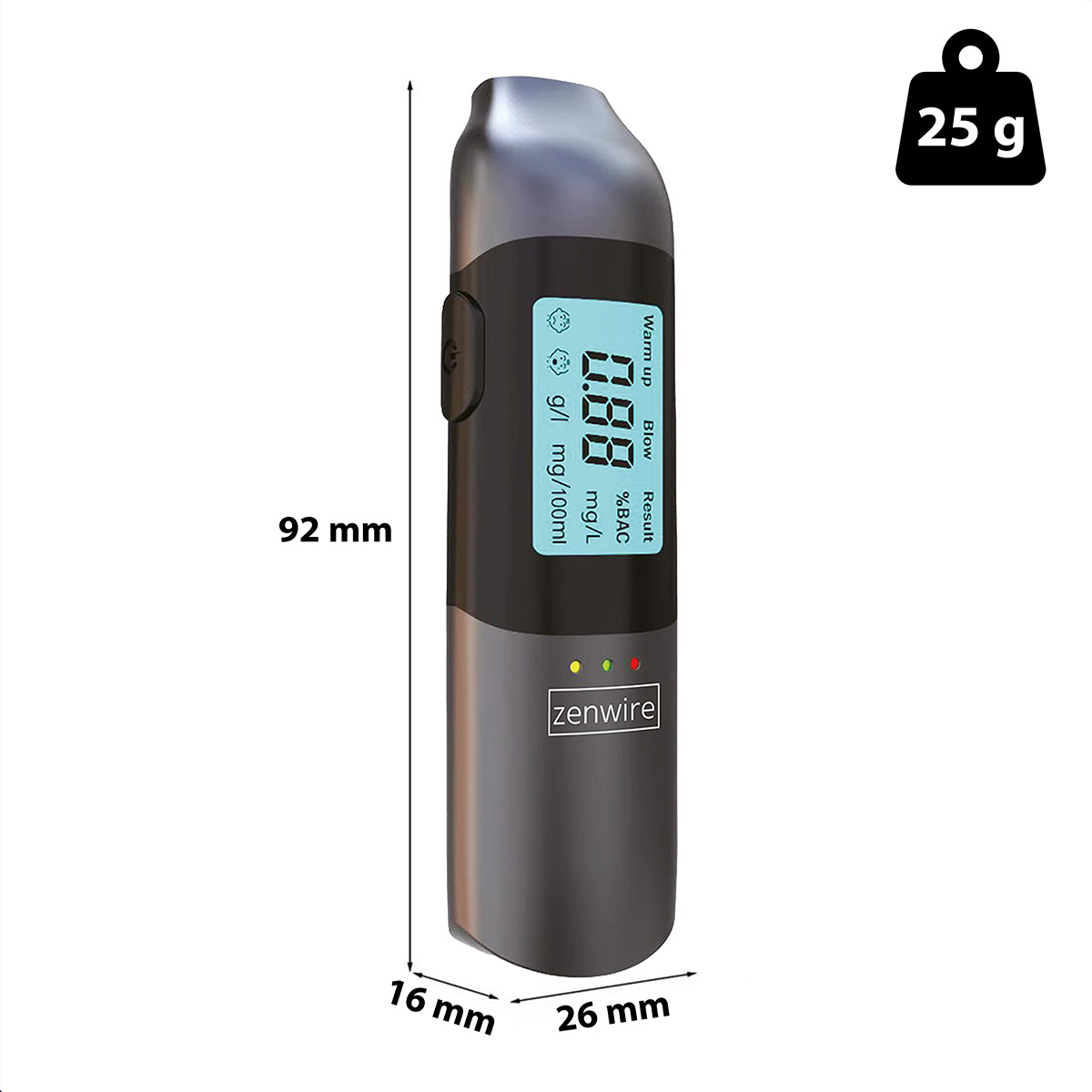 Lekki i kompaktowy alkomat Zenwire MR702 umożliwia szybki pomiar poziomu alkoholu w wydychanym powietrzu, zwiększając bezpieczeństwo prowadzenia pojazdów oraz świadomość własnego organizmu.
