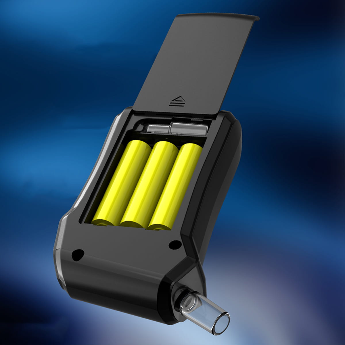 Jeśli przekroczysz próg 0,2‰, alkomat wyda sygnał dźwiękowy oraz świetlny, a po kilku sekundach bezczynności urządzenie automatycznie się wyłączy, oszczędzając energię.