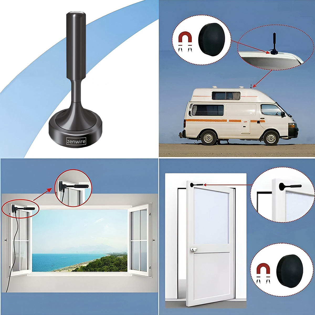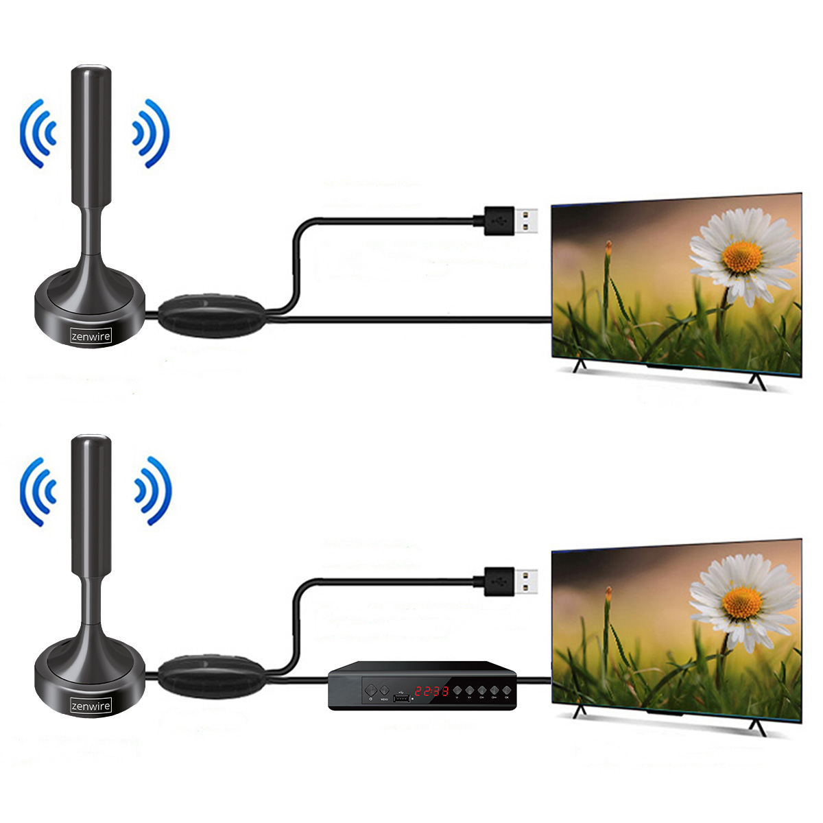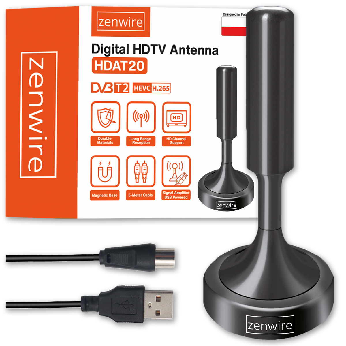 Antena DVB-T2 H.265 HEVC ze Wzmacniaczem do Tunera i Telewizora, Magnetyczna podstawa, Zasilanie przez USB – Zenwire HDAT20