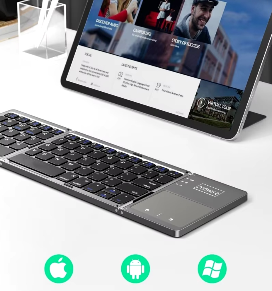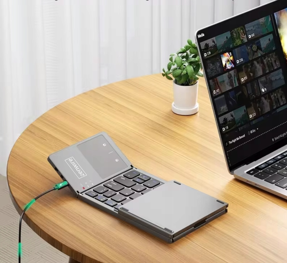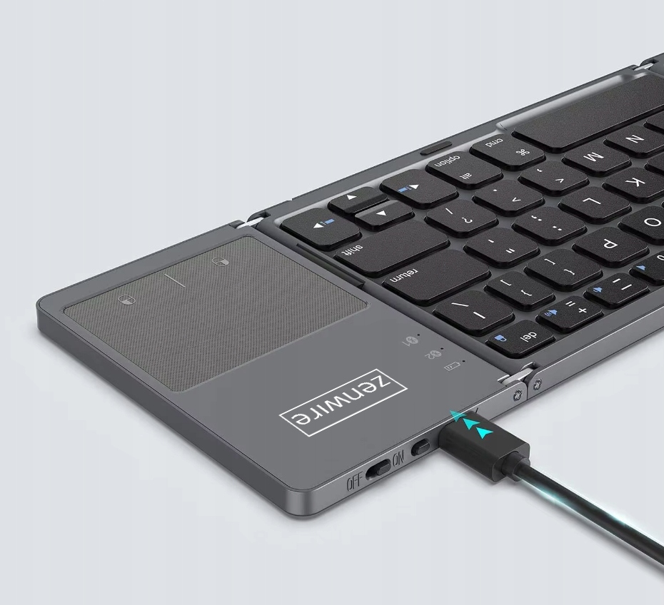Nasza składana klawiatura Bluetooth to idealne rozwiązanie dla osób ceniących mobilność i kompaktowość. Dzięki inteligentnej konstrukcji, klawiaturę możesz złożyć na pół, co ułatwia jej przenoszenie, bez poświęcania funkcjonalności.