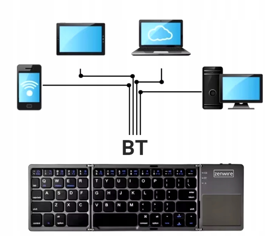 Nasza składana klawiatura Bluetooth Zenwire została wyposażona w zaawansowane przyciski funkcyjne, które pozwalają na szybkie i łatwe sterowanie urządzeniami