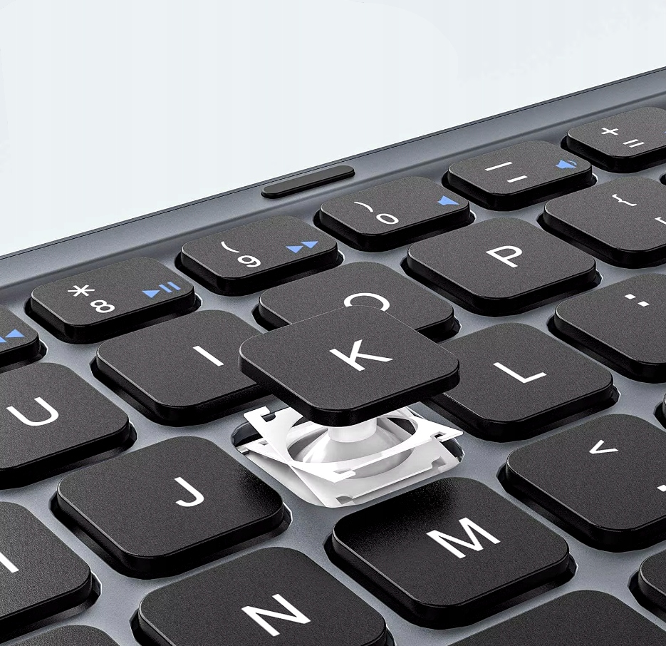 - Wielozadaniowość: Możliwość sparowania z kilkoma urządzeniami jednocześnie. Dzięki temu możesz szybko przełączać klawiaturę między laptopem, tabletem i telefonem, korzystając z dedykowanych przycisków funkcyjnych, bez konieczności ponownego parowania.
