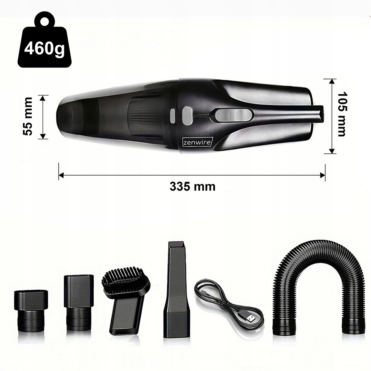 - Zastosowanie: uniwersalne – do samochodu, domu, biura, czyszczenie tapicerki, szczelin i trudno dostępnych miejsc
