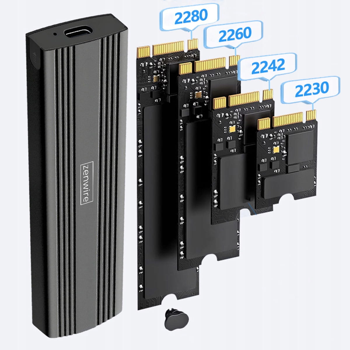 ⭐OBUDOWA ZENWIRE WSPIERA RÓŻNE ROZMIARY DYSKÓW SSD m.2 O RÓŻNYCH DŁUGOŚCIACH, DZIĘKI CZEMU NIE MUSISZ SIĘ PRZEJMOWAĆ KOMPATYBILNOŚCIĄ:⭐