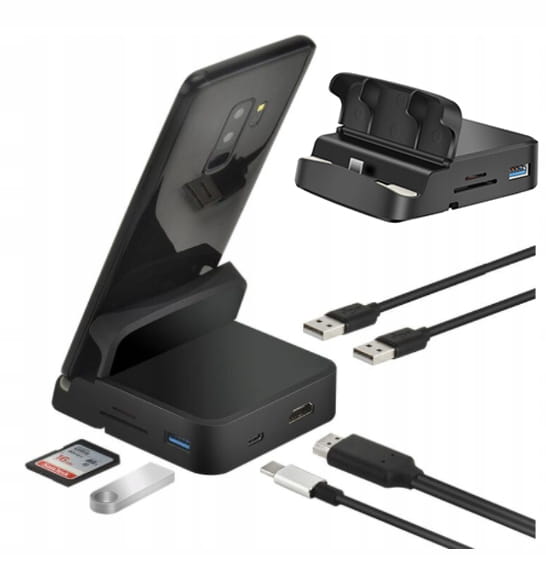 Stacja dokująca umożliwia podłączenie telefonów z serii Samsung i nie tylko w celu obsługi Samsung DEX. Umożliwia jednoczesne korzystanie z wielu złącz naraz w telefonie takich jak HDMI, SD, USB-C Power Delivery czy USB 3.0 co umożliwia podłączenie wszystkich niezbędnych akcesoriów takich jak ładowarka, myszka, klawiatura, pad do gier, kabel HDMI i nie tylko do telefonu i korzystanie z nich wszystkich jednocześnie. Pozwala to zamienić Twój telefon w prawdziwy komputer PC lub konsolę do gier.