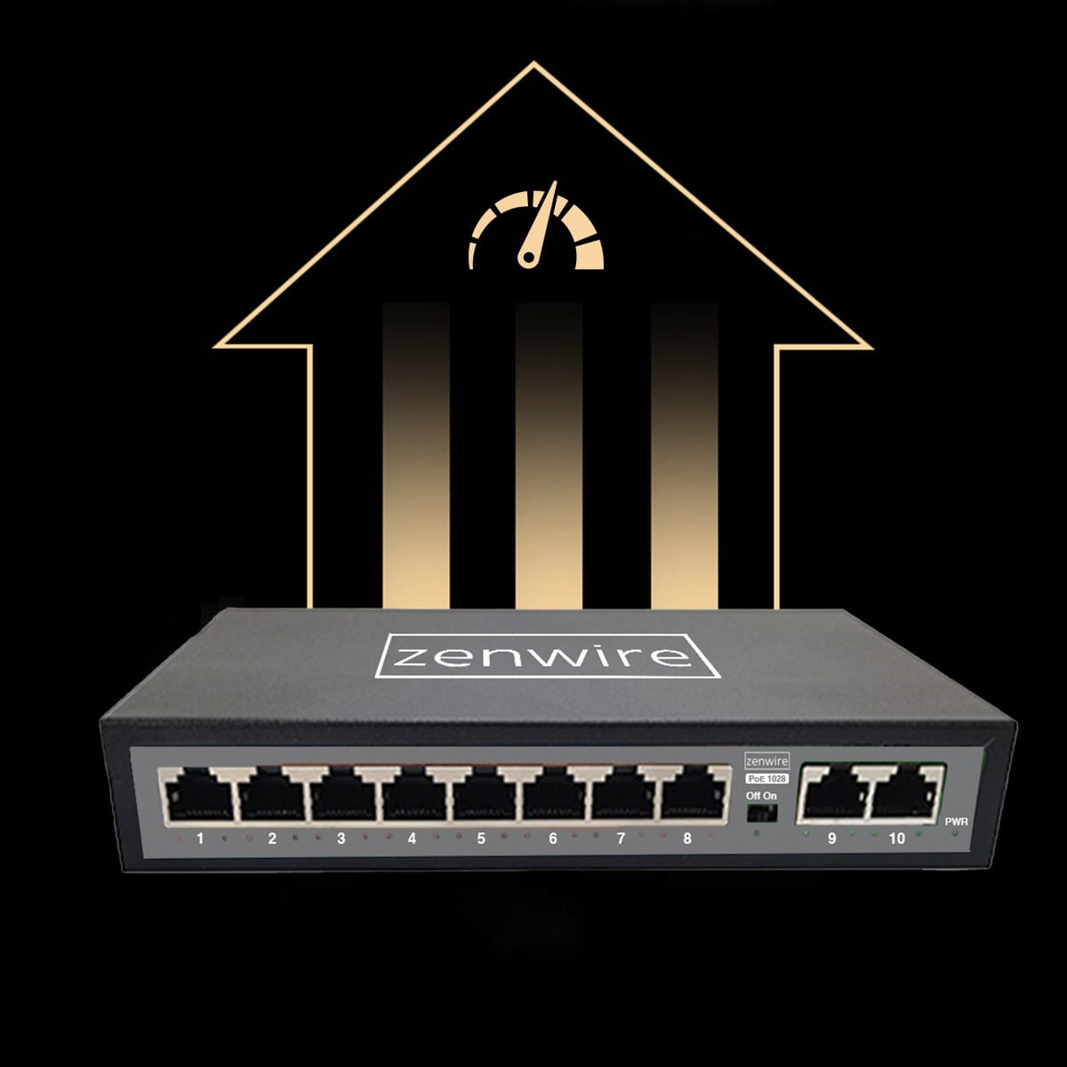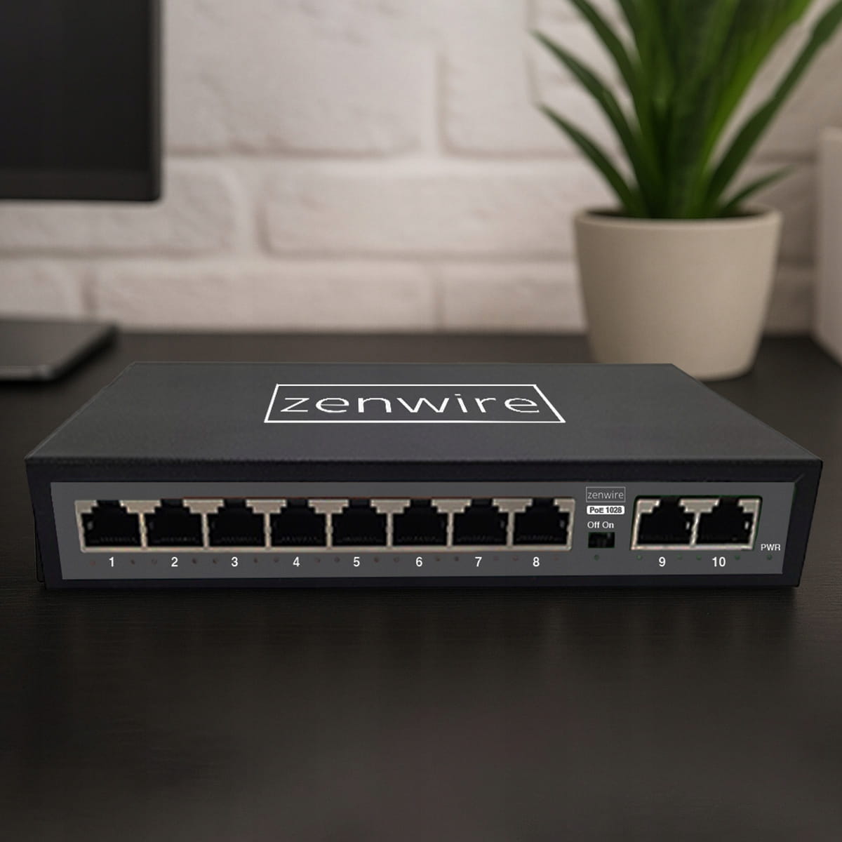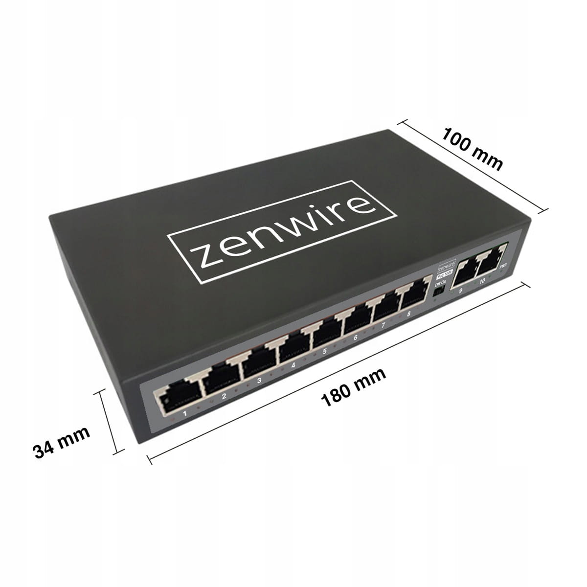 - Switch Zenwire POE 1028 (8 portów PoE + 2 porty Uplink)