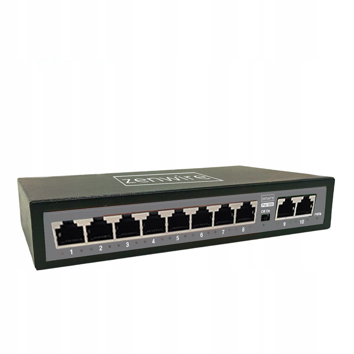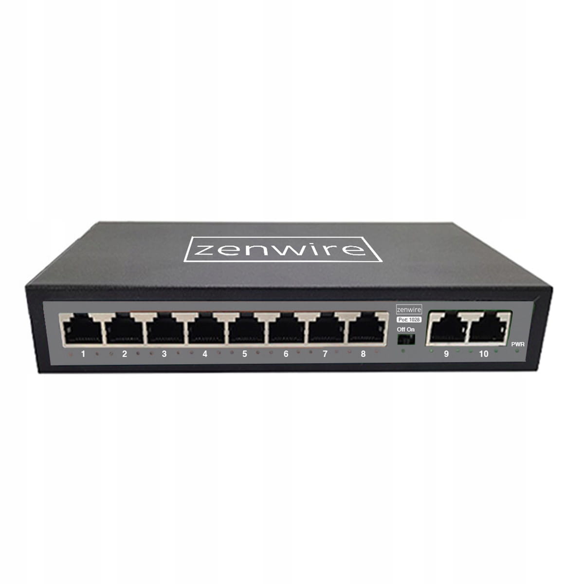 Switch Rozdzielacz Portów 10 Portów 8 POE 2 LAN Ethernet RJ45 do Kamer IP Zenwire 1028